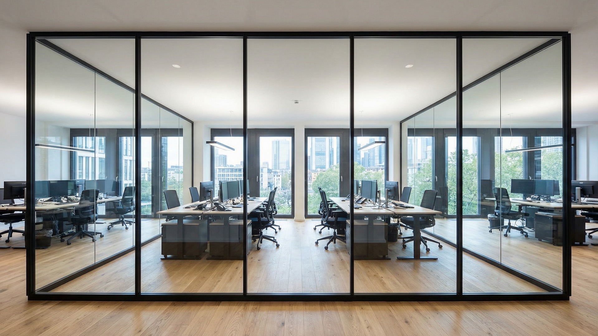 Die moderne Arbeitswelt in Frankfurt erfordert flexible, helle und akustisch optimierte Räume. Eine hochwertige Glastrennwand ist die ideale Lösung, um Großraumbüros zu strukturieren, ohne die offene Atmosphäre zu verlieren. XFRAME bietet Ihnen maßgefertigte Glasprofilsysteme, die durch minimalistisches Design und herausragende technische Werte überzeugen.